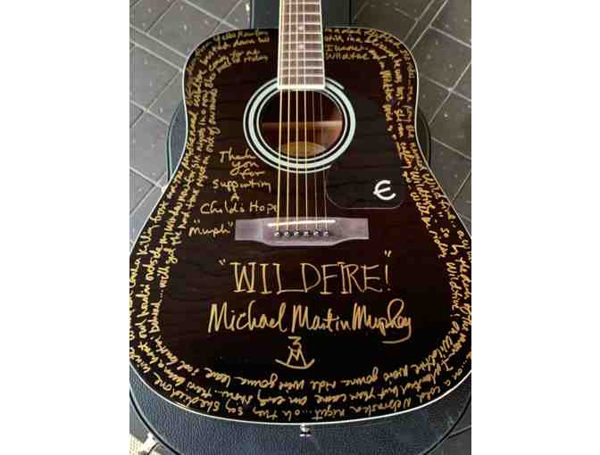 The guitar has the words to Murphey's hit "Wild Fire" written in his hand around the