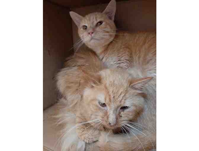 "Hi there, we're Karisimbi and Elbrus. Along with our 18 brothers and sisters, we were rescued from a hoarding situation by MRFRS and needed immediate medical attention on the Catmobile before being considered for adoption."