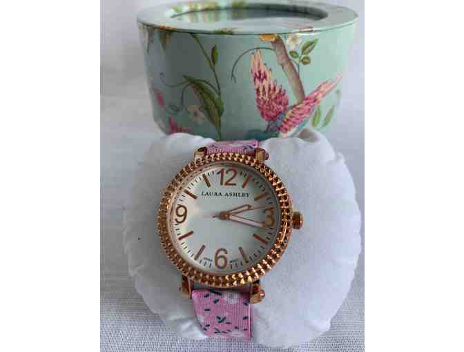 Laura Ashley Pink Floral Band Fluted Bezel Watch.