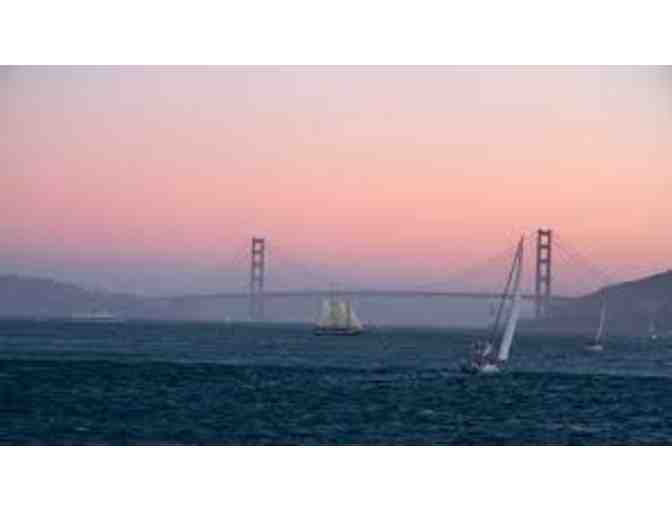 Enjoy views of San Francisco, Alcatraz and both iconic bridges on the bay! This package includes a voucher for 2 people for either a Golden Gate Sailing tour with San Francisco Sailing Co. This includes 2 free drinks (mimosas, champagne, wine, beer or soda) and is 10am-12pm on any Saturday or Sunday