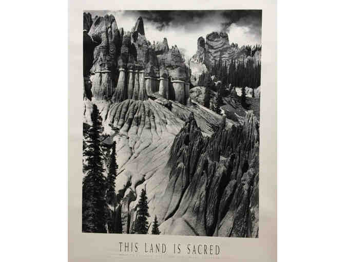 A-23 J. D. Marsten Photography poster: “This Land is Sacred: Wheeler Geologic Site, San Luis Valley, Colorado.” Black and white, Ansel Adams like, very sharp. Besides my various labyrinth drawings and rubbings I am selling a few other cherished possessions, of which this is one.