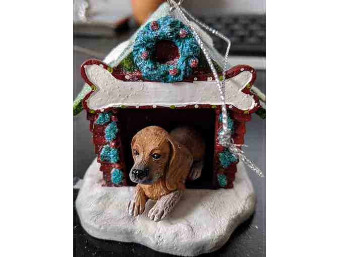Doghouse Christmas ornament. Made from fired ceramic. Great for any family that loves dogs. Looks amazing on any Christmas tree. Measures 2.5in (6cm) wide and 3in (7.5cm) tall