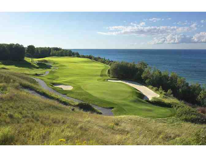 Enjoy this beautiful golf outing and accompaniments! Round of golf for 2 players (18 holes) at Bay Harbor Golf Club in Bay Harbor, MI