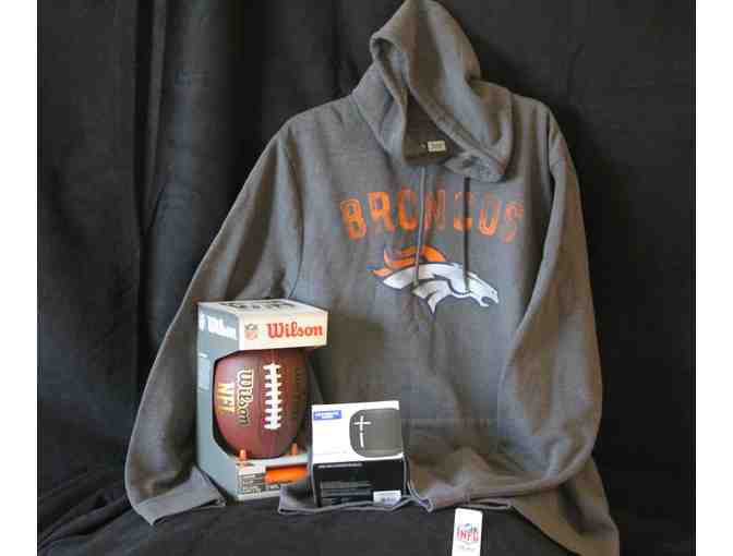 Any Broncos fan would love this basket. Have fun playing with a football and listening to music while wearing this new NFL hoodie. You will be ready for the next game!