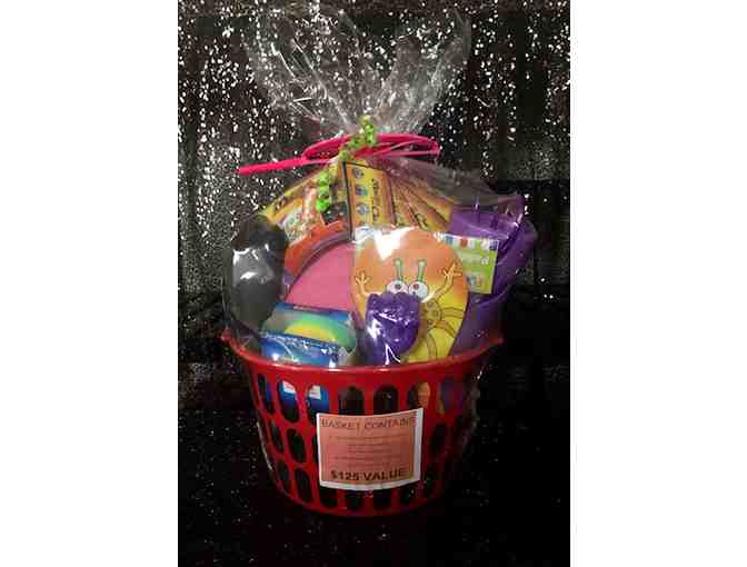 Enjoy a fun night out with Monster Mini Golf in Paramus! This auction basket includes four (4) passes for a round of mini golf, a $50.00 gift certificate toward any private party booking, and an array of classic toys!