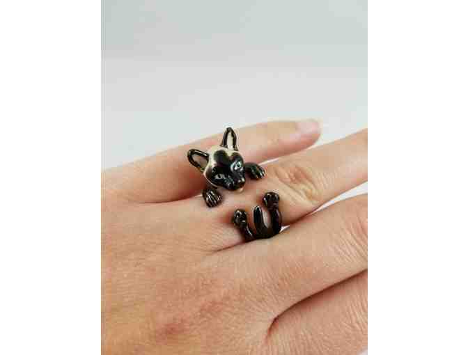 Cat Fever Sterling Silver Hug Ring faithfully portrays the iconic Siamese cat breed.