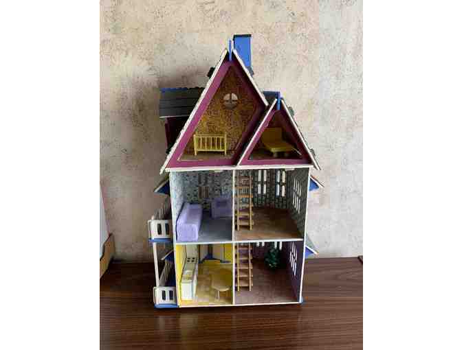 Bring out the inner child in you or visit a little of the past with the children in your life with this homemade Victorian dollhouse and school house.  Dollhouse and school house come furnished with several furniturepieces.