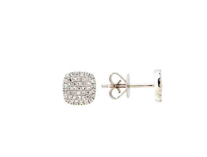 Cushion shape dimond earrings in 14k white gold with diamonds (.20CTW GH SI). The earrings measure ¼” x ¼”.