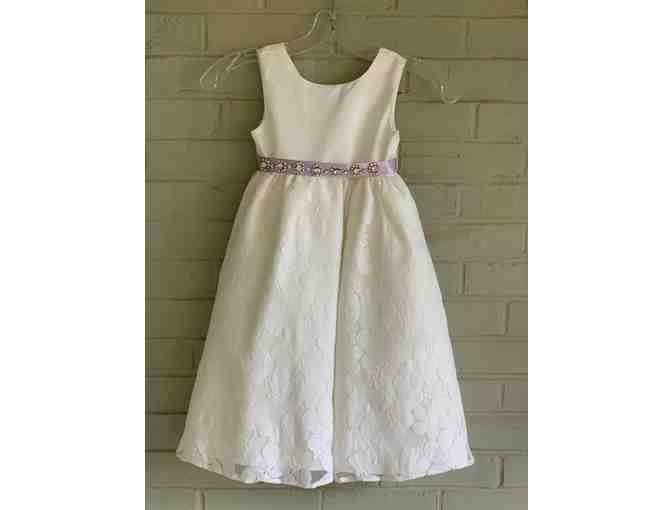 Girl's Rosebuds ivory dress with purple sash, size 4.