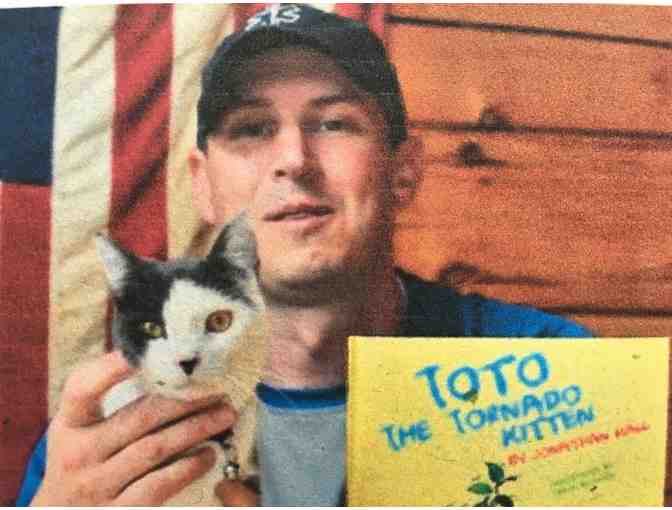 Your chance to visit with a “movie star” - Toto the Tornado Kitten. If you win this whimsical auction item, author Jonathan Hall and his cat Toto will come visit your school, library, party or any other event where he will tell the amazing true story about a kitten named Toto who was found in a tree after a tornado and who has become the subject of a very popular set of children's book all about Toto's true adventures.
