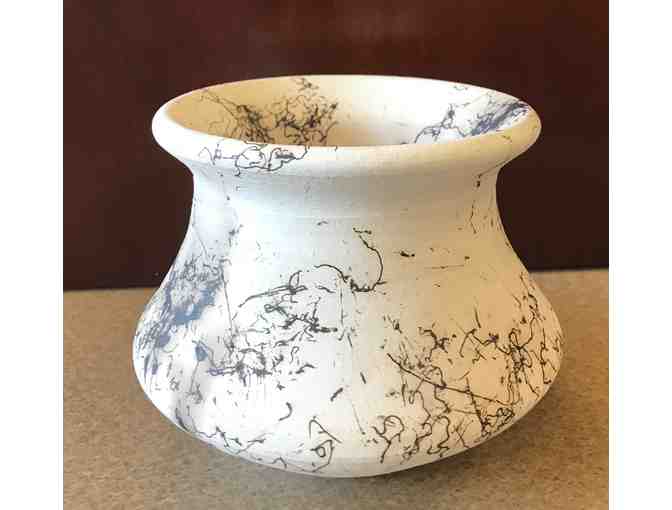 Retired Art teacher, Patty Leeson has created this 4 inch high & 3 inch diameter horse hair pot.