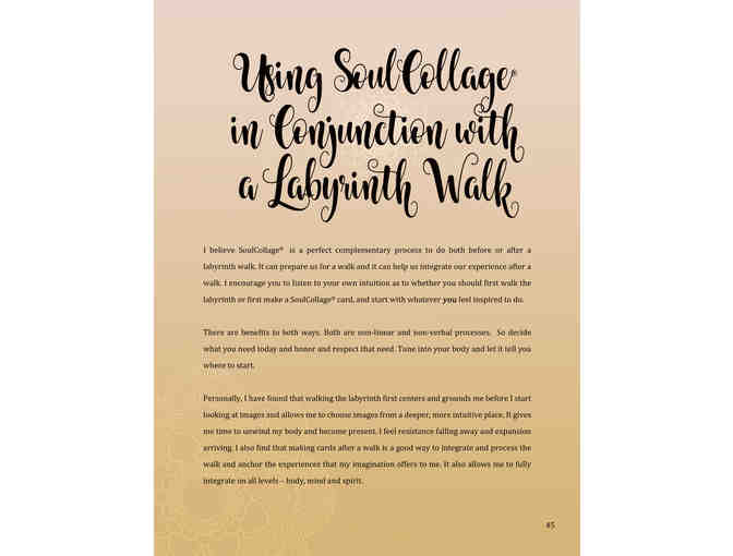 This inspirational guide will take you on a journey of self-discovery using the practical tools of SoulCollage® and the labyrinth. These simple processes encourage you to use your imagination, intuition and inner wisdom to follow your unique winding path towards wholeness and meaning. Many of the ideas are suitable for SoulCollage® and Labyrinth Facilitators to use as they guide others on this journey of soul discovery. "Using images and archetypal patterns, Catherine Anderson’s Meeting Your Soul on the Labyrinth is a trustworthy guide into Divine Mystery. In this ground breaking work, Catherine blends two intuitive practices – walking the Labyrinth and SoulCollage – to gain self-knowledge and lasting insight. Visually arresting with inspired quotes, each page offers soul work for both beginners and those well on the journey." The Reverend Dr. Lauren Artress, author of Walking a Sacred Path: Rediscovering the Labyrinth as a Spiritual Practice.