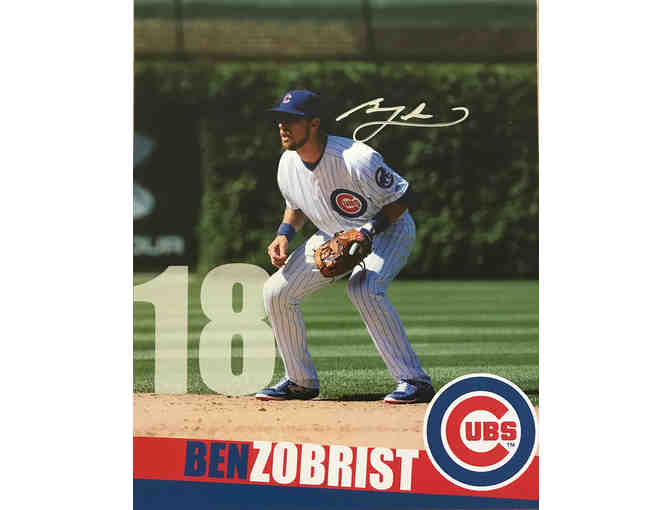 Ben Zobrist (nickname Zorilla) is a second baseman & outfielder for the Chicago Cubs. He has played in three World Series. He was the 2016 World Series Most Valuable Player. This photo is autographed & has been donated by the Chicago Cubs.
