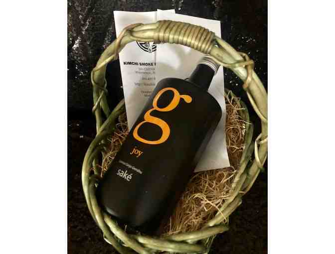 Are you or a loved one a BBQ lover? This auction package includes a crisp bottle of 'Joy' sake and a $25.00 gift card from Kimchi Smoke in Westwood, NJ