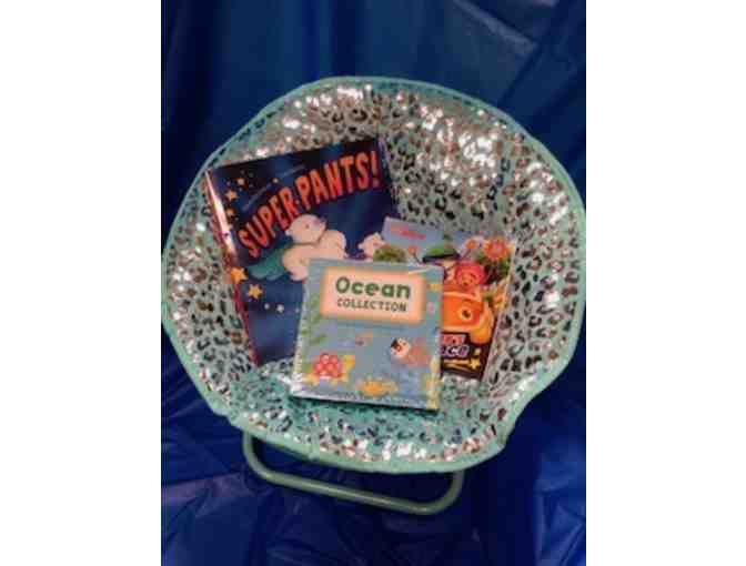 Perfect for your daughter in kindergarten! Includes adorable teal & cheetah print papazan chair and 3 beginner books. This "basket" also includes a LeapFrog Leapstart Interactive Learning System!