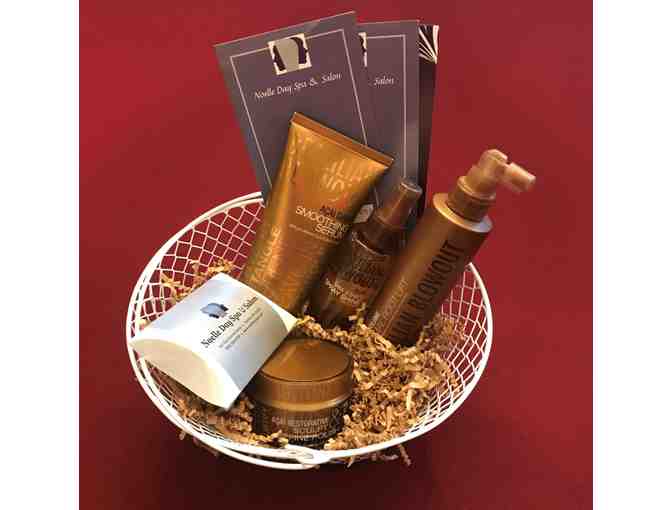 Begin your day with the products in this fantastic Noelle Day Spa Beauty basket, which includes: blowout spray and polish, smoothing serum, spray shine, and a $50 gift certificate. Then, enjoy dinner out with two (2) $25 gift cards to Alumni Restaurant and Bar. Sweeten the end of your day with a $20 gift card to Green Mountain Chocolates. All in Franklin, MA.