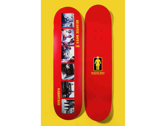 This Beastie Boys Sabotage Skateboard Deck By Girl Skateboards / Spike Jonze comes with personlized autographs from Adam "Ad-Rock" Horovitz and Mike "Mike D" Diamond, and is signed by Spike Jonze (who took the photographs on the deck & of course directed the 1994 iconic video).