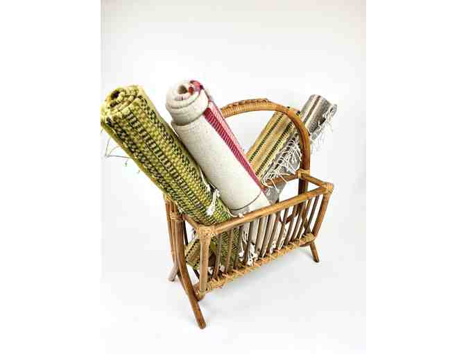 Hand dyed wool area rug by artisans in Oaxaca, Mexico. 3 x 2 feet.