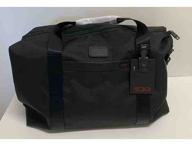 This is the travel satchel you can take anywhere—and everywhere. Color is Black. Tumi travel satchel 12.5” x 18” x 8.5” comes with barcode registration in case lost.