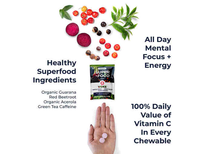 Voke is a convenient chewable tablet that clears brain fog and rapidly transforms your ability to focus on the task at hand. With superfoods backed by over 25 independent research studies, Voke will help you maintain all-day mental energy, laser focus, upbeat mood, & clear thinking.