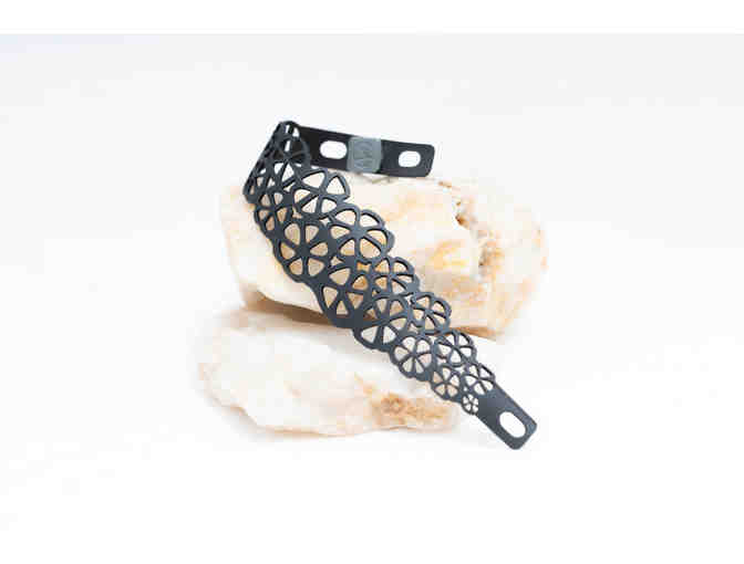 Light and airy this bracelet is inspired by the love of summer and fruit! The Citrus rubber bracelet is made out of 100% up-cycled bike inner tube rubber and has a cufflink closure that is 3D printed from recycled Legos. Made in Vermont.