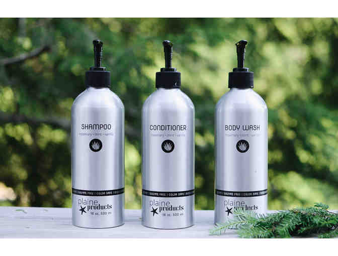 Feel good while you do good when you use our all natural rosemary, mint, vanilla shampoo, conditioner, and body wash in refillable, returnable aluminum bottles. Our organic ingredients work together to bring your hair and skin back to life and restore manageability, adding sheen and softness. How our eco-friendly packaging system works: #1 - Order one of our awesome products. Take the lid off and insert the pump into the refillable bottle. #2 - Recycle the original shipping box and the extra lid. #3 - When your product runs low, order a refill and switch the pump over to the new bottle when it arrives. #4 - Return your empty bottles in the refill's box with the enclosed shipping label for FREE to be cleaned, refilled and reused. We make it easy to help the planet while treating yourself!