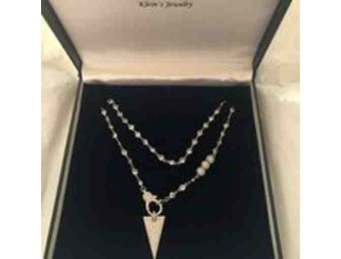 A remarkable silver cable chain designer necklace with intricate and sparkling lab created stones. Sits beautifully on the neck.