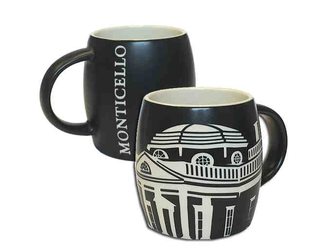 Handsome matte finished black coffee mug is etched with an artistic rendering of Monticello. Microwave and dishwasher safe, the mug holds 12 oz.! Free shipping!