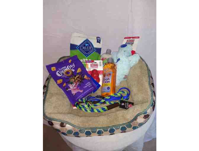 Comfy Dog Bed, Kong (M), Fresh 'n Clean Shampoo and Oatmeal Shampoo, Kong Cozie Blue Dog Toy, Fromm Crunchy O's Blue Buffalo Co Health Bars, Blue Collar (14"-20"), 4' Snap Lead