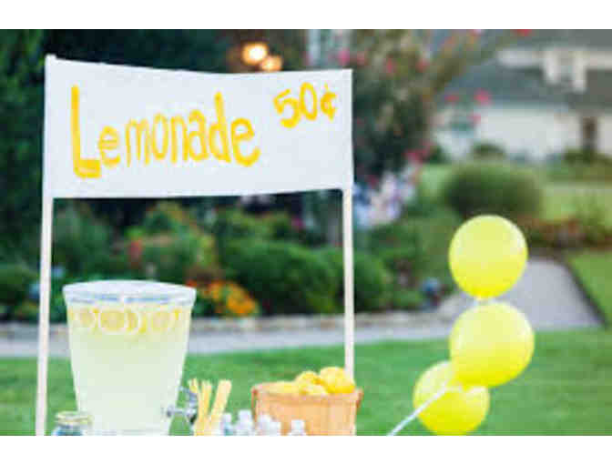 Custom Made Lemonade Stand with Country Time Lemonade Mix, Shatterproof Acrylic Pitcher, Long Stainless Steel Stirrer, Bamboo Serving Tray, 4 Hand Towels, Cash Box & Receipts