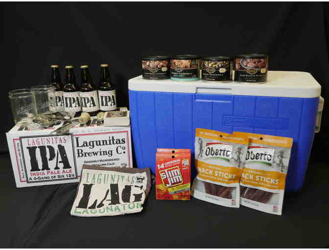 Suds it up with this BEER & BITES combo. Invite your friends and family to partake in a few brewskis and snacks, including nuts, beef treats, a case of Lagunita's IPA and a handy blue cooler to keep the cold ones the perfect temperature and even take it outside or on the road! Added bonus - a lot of beer inspired swag, from glasses and openers to shirt and more.