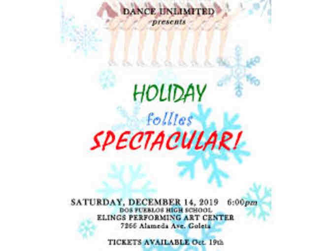 Dance Unlimited: 2 Tickets (3rd Row) to their December production of "Holiday Follies Spectacular" Saturday, December 14, 2019 at the Elings Performing Art Center at Dos Pueblos High School at 6 p.m.