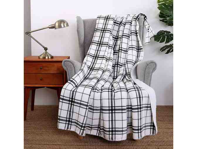 Berkshire Blanket Reversible Plaid & Sherpa Throw Blanket in Black & White