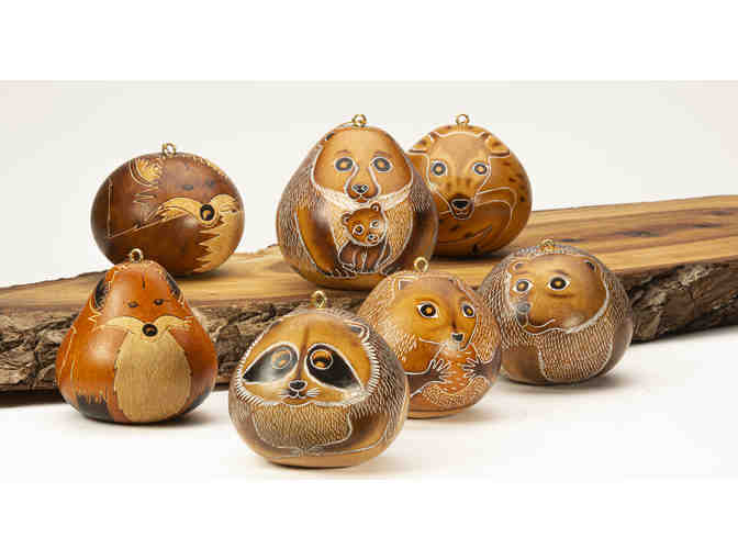 Bring these adorable woodland creatures into your home! Or they will make wonderful gifts for your nature loving friends. Each fair trade and natural gourd ornaments is intricately hand-carved and colored with fire by artists in Peru. This set of seven forest animals includes a racoon, a deer, a bear, a mom bear, a squirrel, a brown fox and an orange fox. They bring a modern twist to a 4,000-year-old tradition. Each ornament is 2"-2.5” tall.