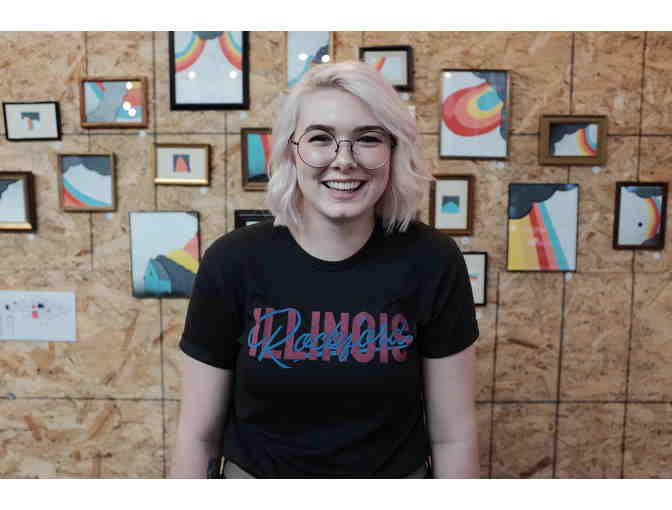 Custom t-shirts printed by Rockford Art Deli with water-based ink using Allmade brand t-shirts...an incredibly comfortable tri-blend shirt made from 6 recycled plastic bottles!