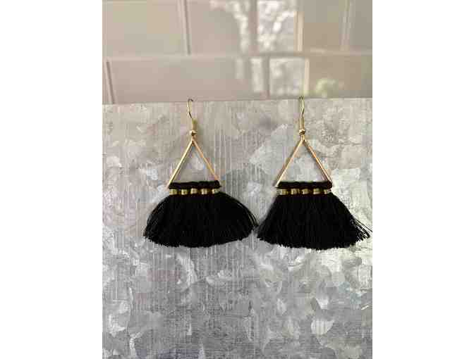 These black and gold geometric tassle earrings are an everyday perfect set as they beautifully match any outfit!
