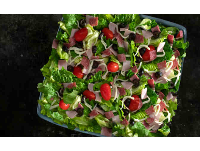 A gift certificate for a large one topping pizza. Also included is a $25 gift certificate that can be used on their famous deep dish pizza, delicious fresh salads, breads, a dessert, hand tossed & thin crust pizza, a gluten-free option & one-of-a-kind Jetzee sandwiches.