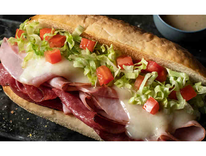 A gift certificate for a large one topping pizza. Also included is a $25 gift certificate that can be used on their famous deep dish pizza, delicious fresh salads, breads, a dessert, hand tossed & thin crust pizza, a gluten-free option & one-of-a-kind Jetzee sandwiches.