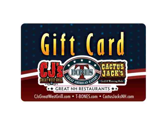 This certificate if good for use at T-Bones, Cactus Jack's, CJ's, and Copper Door, at locations in Bedford, Derry, Hudson, Laconia, Manchester, and Salem NH.