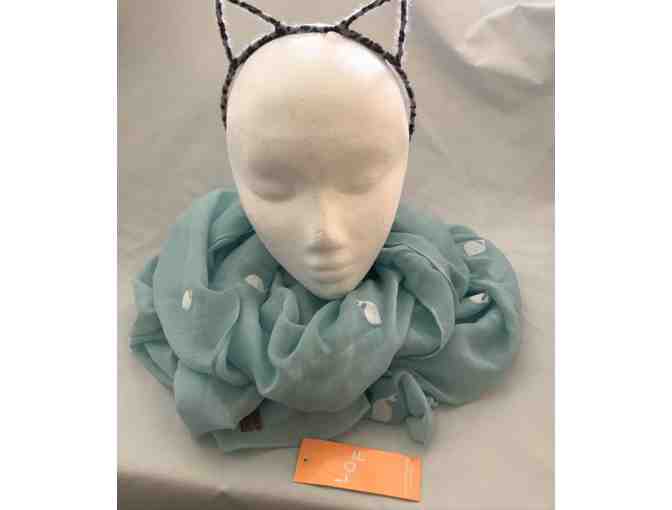 Light blue Infinity scarf with gauze material with white whale design. NWT