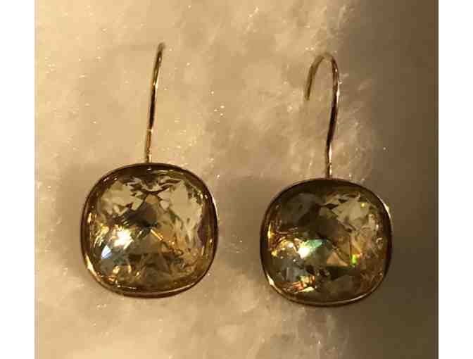 Golden Topaz earrings for pierced ears aprox on quarter inch in size. There is rubbing on gold backing. Good vintage condition.