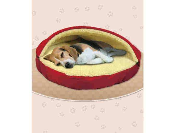 Pet Cave is like a luxurious sleeping bag for your favorite pal. It has a 5" thick bed with a Sherpa lining that surrounds your pet with warmth and comfort. The removable cuddle cover provides an extra blanket of warmth and contours to fit the size of your dog or cat. It can be used with or without the zippered top for a cozy place to relax or sleep. Your pet will love it, or give it as a gift to spoil someone else's pet. Polyester. Cover is machine care. 25" dia. x 5".