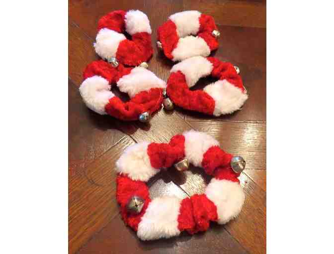 Your baby will be ready for Christmas with these adorable red and white adjustable jingle bell collar and cuffs. Winning bidder will be able to watch there pup strutt his or her stuff while jingling all the way home.