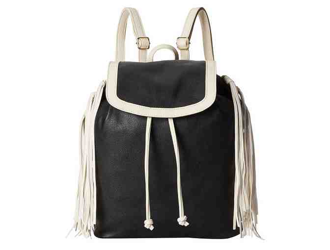 For the perfect blend of function and fashion try this Big Buddha Hails Backpack sleek exterior boasts fringe detail and brand plaque at back. Has a foldover flap with magnetic and drawstring closure, single carry handle at top and adjustable shoulder straps, opens to a roomy fabric lined interior with 2 slip and zip pocket.