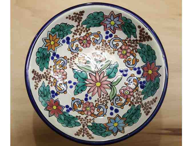 Colorful and delightful! Charming Mexican folk-art floral design makes this handcrafted pottery bowl a fun decorative item for your home or for a gift. Bowl bears makers mark Talavera Tecayehuatl Puebla Mex.