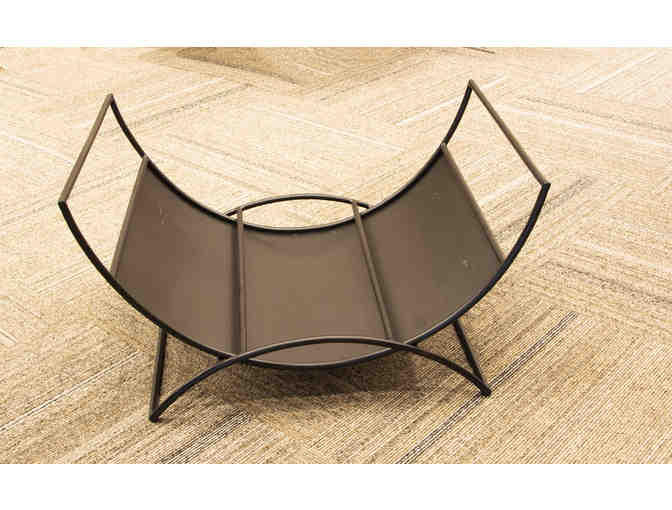 Wrought iron firewood holder with black powder coat is designed for indoor use. The bold modern design will give your hearth style with function. Closed platform cuts down on wood debris and dust. Your canvas carryall may neatly nest in the generous dimensions of the holder. Measures 28" L x 16" H x 21" W.