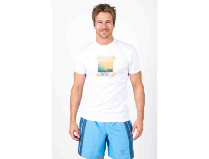 The LA ISLA To the Sea vintage graphic tees with their seascape, taped Polaroid picture, soft cotton fabric, slender fit, and our La Isla Native Sun logo in light teal on the back bottom left is just what you’ve been looking fo.