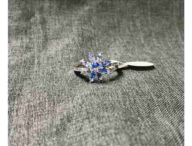 Gift someone a little bit of dazzle with this crystal flower ring in irridescent indigo. Playful, bright, and elegant--perfect for any occasion!