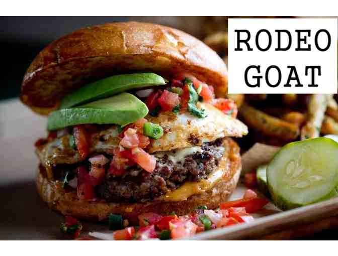 Enjoy the best gourmet burgers and craft brews in Fort Worth with this $35 gift card! Rodeo Goat has amazing inventive variations on house-ground burgers and a large variety of craft beers.