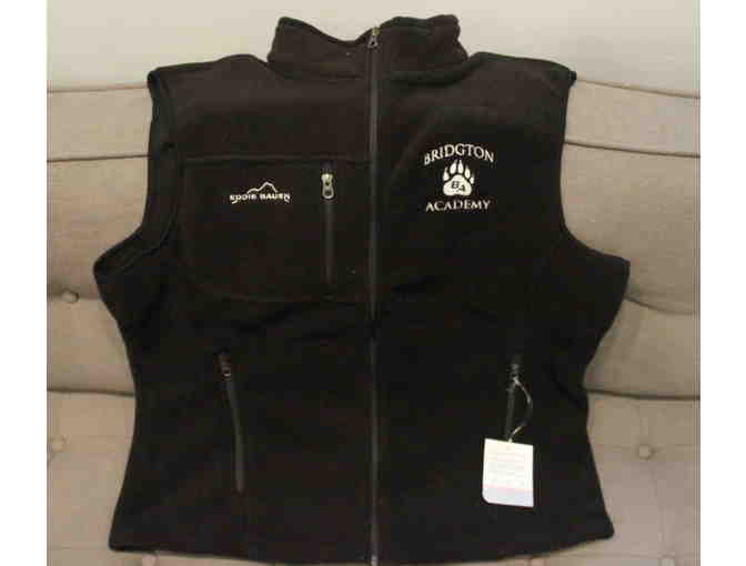 Men's XL Eddie Bauer Black Fleece Vest with Bridgton Academy Pawprint Logo